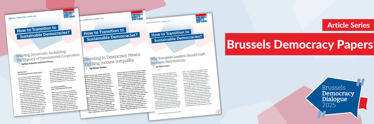 In response to the rise of leaders with autocratic tendencies in advanced democracies, creeping autocratisation in many democracies previously considered consolidated, and faltering democratisation processes in Southeastern and Eastern Europe, the Friedrich-Ebert-Stiftung EU Office Brussels and FES Democracy of the Future Office Vienna organised the first Brussels Democracy Dialogue on 20 November 2024.