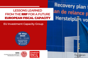 The European Commission has announced a performance-based approach to funding in one of the next MFF pillars. To exchange learnings and discuss improvements, the EU Investment Capacity Group gathered on Tuesday, 20 May 2025 between 12:15 – 13:45 at FEPS HQ in Brussels and online. The event focussed on the policy brief “Lessons learned from the RRF for a future European fiscal capacity” (see above) by Atanas Pekanov.