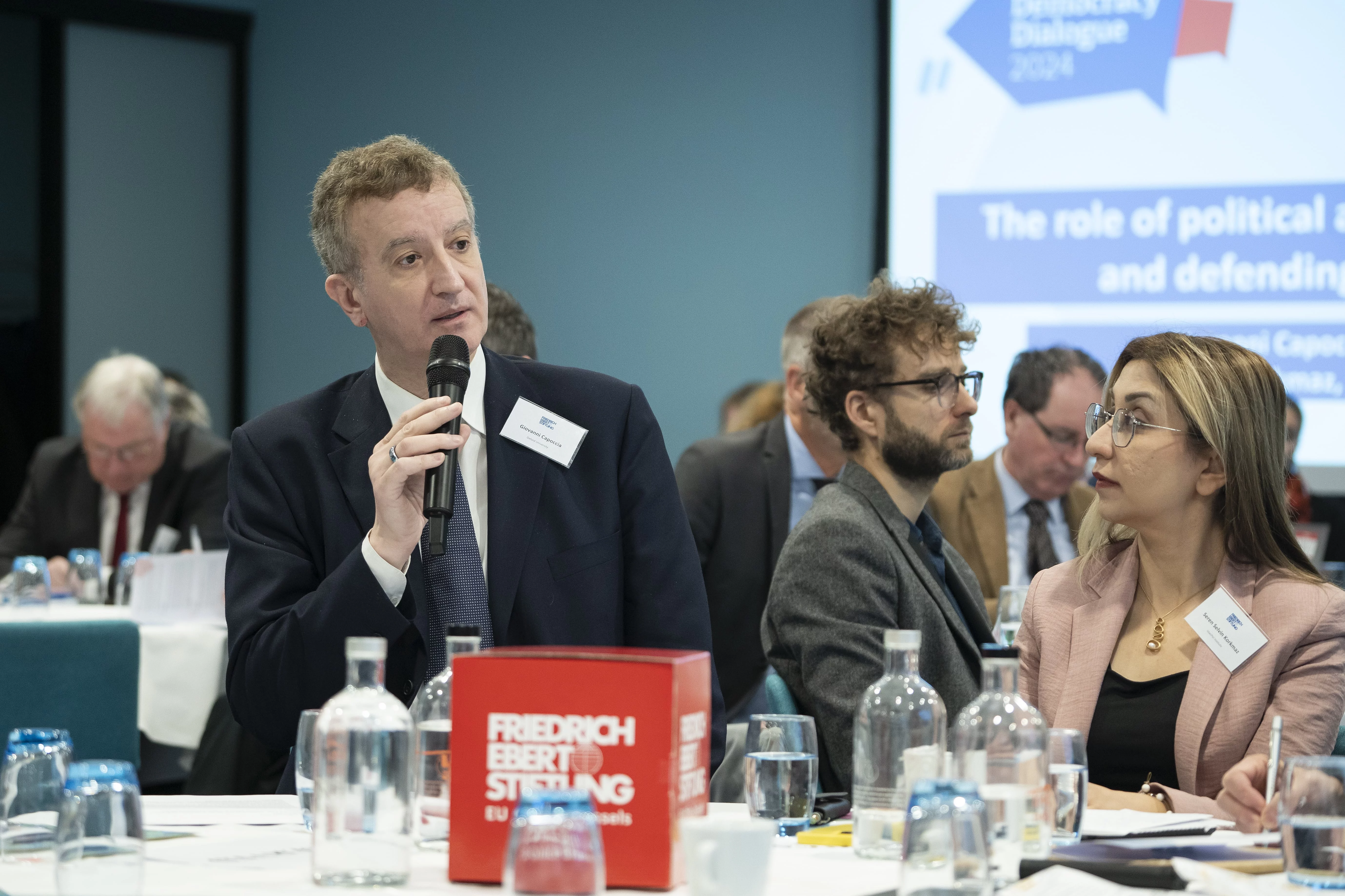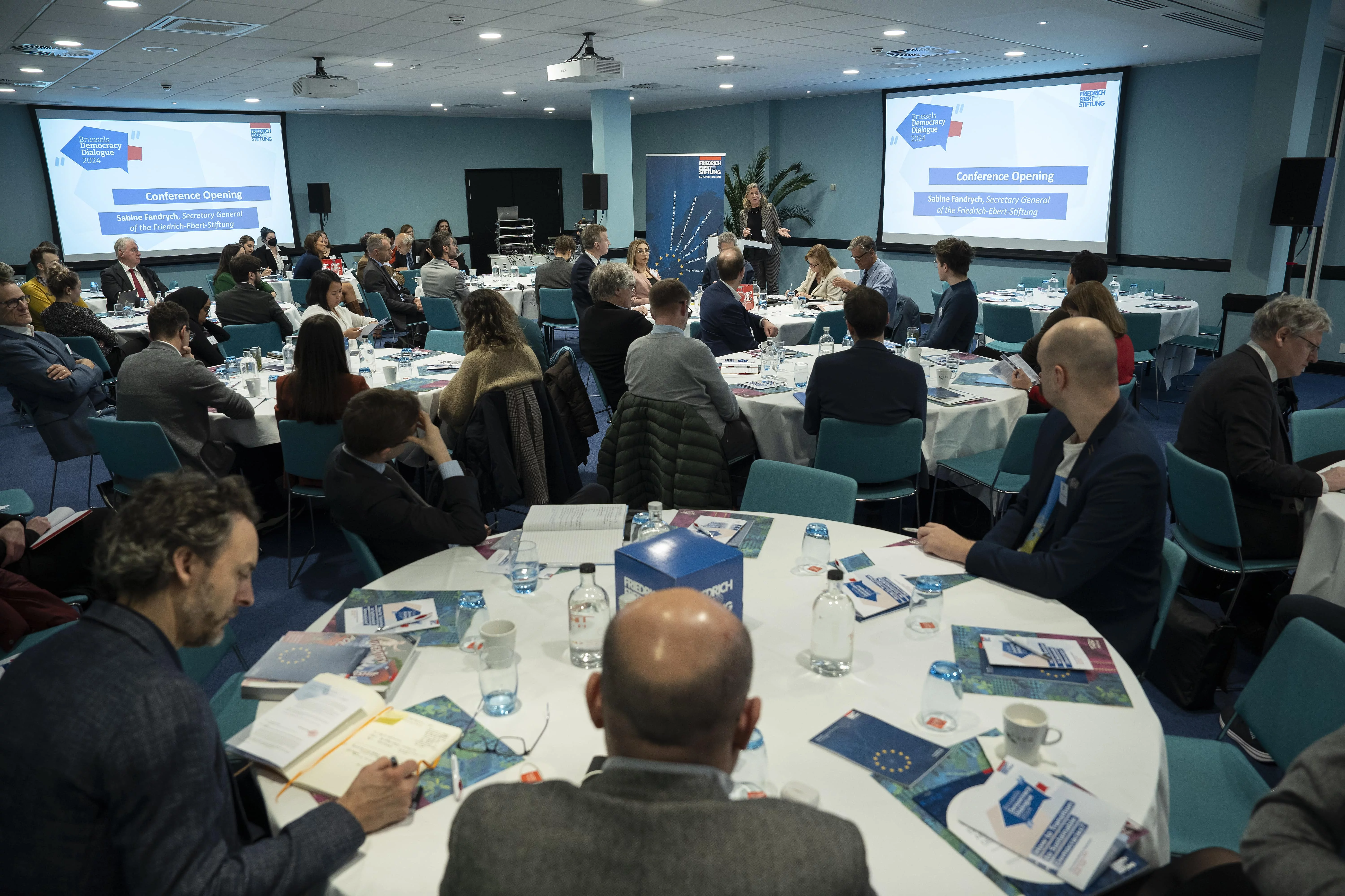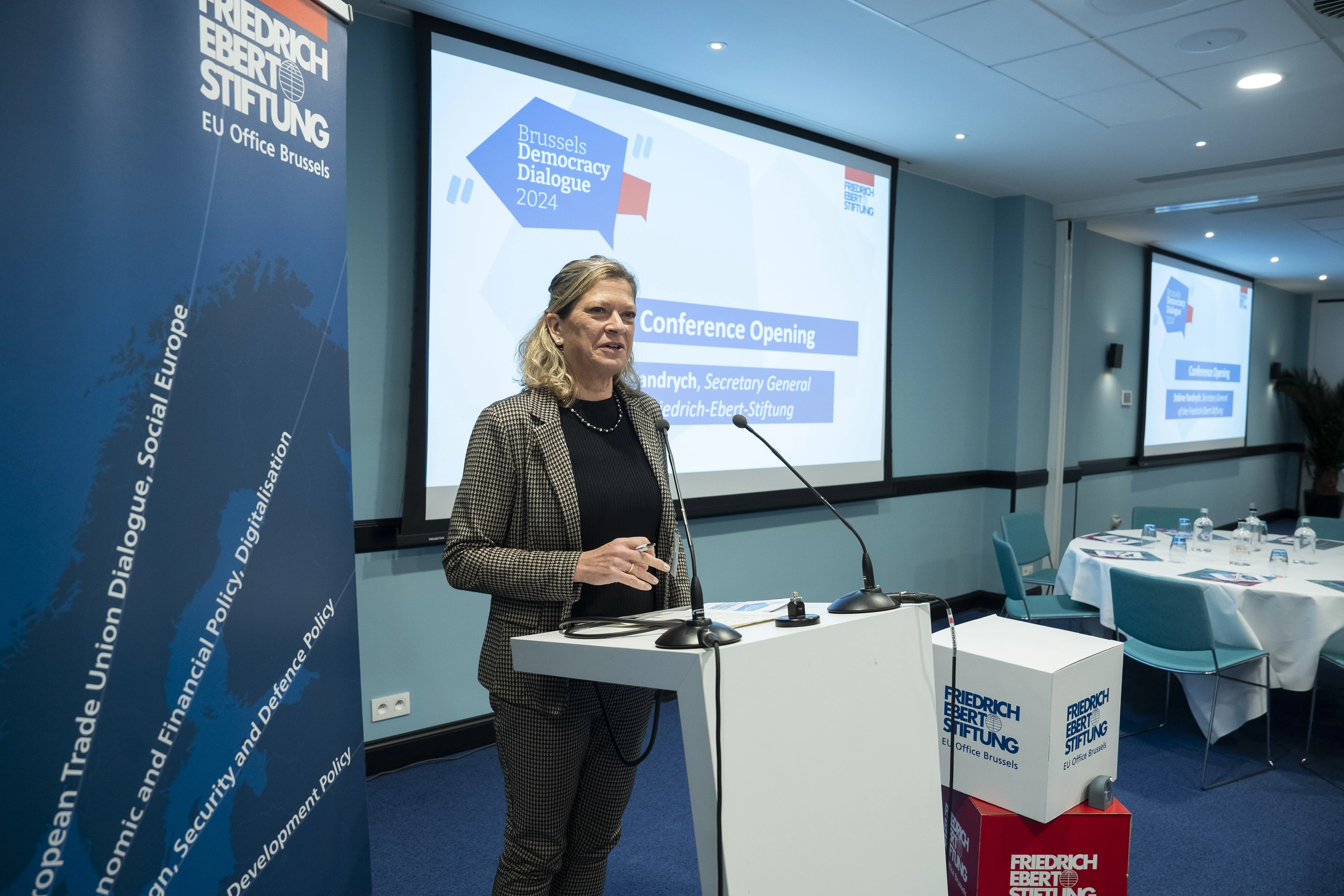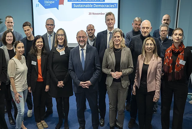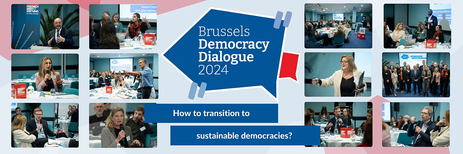 Brussels Democracy Dialogue 2024 22.11.2024 On 20 November 2024, policymakers, academics and civil society leaders met in Brussels to discuss the transition to sustainable democracies. Sunday, 02.04.2023 News Publication Hambach Democracy Dialogue: Shaping a Progressive European Democracy The third edition of the Hambach Democracy Dialogue (HDD) will take place on 15 and 16 June. We will discuss how Social Democracy can be defended and how it should respond to the current challenges. Wednesday, 20.11.2024 Event News Brussels Democracy Dialogue 2024: How to transition to sustainable democracies? On 20 November 2024, we will organise the first Brussels Democracy Dialogue. Just like the Hambach Democracy Dialogue (HDD), the Brussels Democracy Dialogue is a platform to exchange progressive ideas and proposals for further developing European... Thursday, 12.06.2025 News Brussels Democracy Papers: How to Transition to Sustainable Democracies? The Brussels Democracy Dialogue 2024 addressed the important question "How to Transition Sustainable Democracies?" Based on the discussion outcomes, a series of new papers aim to provide answers. On 20 November 2024, policymakers, academics and civil society leaders met at the Brussels Democracy Dialogue 2024, organised by the Friedrich-Ebert-Stiftung EU Office Brussels and FES Democracy of the Future Office Vienna. Just like the Hambach Democracy Dialogue (HDD), this expert conference served as a platform to exchange progressive ideas and proposals for further developing European democracies - an increasingly urgent task in times of creeping autocratisation and faltering democratisation processes throughout the continent. The first Brussels Democracy Dialogue addressed how the transition to sustainable democracies can best succeed. For the longest time, four key factors have been regarded as essential: socio-economic aspects that favour the development and stability of democracy (e.g. a prosperous economy, a low level of inequality); the existence of a liberal and democratic tradition (e.g. pre-authoritarian social movements, organised interests, and a democratic-parliamentary culture) that facilitates the entrenchment of liberal and democratic values in the society; a political elite that is committed to democratic norms and principles; strong international democracy supporters that make the external costs of authoritarianism high. With these principles critically in mind, the first panel discussed assaults on democracy by increasingly authoritarian-minded politicians and the erosion of democratic norms and principles and how to react and counteract them. The second session highlighted the role of citizens in defending democracy and asked the question of why parts of our societies are receptive to illiberal values. Tackling the shift in the balance of power The next discussion examined the ties between solid economic performance and resilient democracies - and uncovered an apparent paradox: while some voters in Europe decided to elect leaders who subverted democracy despite a stable economic output, other democracies remained steadfast even in the face of deep economic crises. Finally, discussants tackled the issue of the waning influence of Western liberal democracies and the rise of authoritarian actors such as China and Russia. In his concluding speech, FES President Martin Schulz painted a hopeful picture, pointing to the strong support for democracy and democratic values among the majority of the population despite the adverse circumstances. Consult the full programme, including all speakers and panelists, here. On the occasion of the Brussels Democracy Dialogue, FES published a study looking at the role of pro-democratic actors in democratisation processes worldwide. Read the paper here: "External Actors in Democratization. Lessons from the Friedrich-Ebert-Stiftung", by Sarah Bush and Julian D. Melendi, October 2024. External actors in democratization Bush, Sarah ; Melendi, Julian D. | Vienna : Friedrich-Ebert-Stiftung, October 2024 lessons from the Friedrich-Ebert-Stiftung Download publication Brussels Democracy Papers The lively discussions during the Brussels Democracy Dialogue inspired a series of articles that shed light on different aspects of democratic backsliding and provide examples of how to build up resilience. Investing in democracy means fighting income inequality Stokes, Susan Carol | Bonn : Friedrich-Ebert-Stiftung, 2025 Download publication Resisting democratic backsliding Sobovitz, Dan ; Preiss, Omri | Bonn : Friedrich-Ebert-Stiftung, 2025 the urgeny of transnational cooperation Download publication Picture Gallery © BR&U
