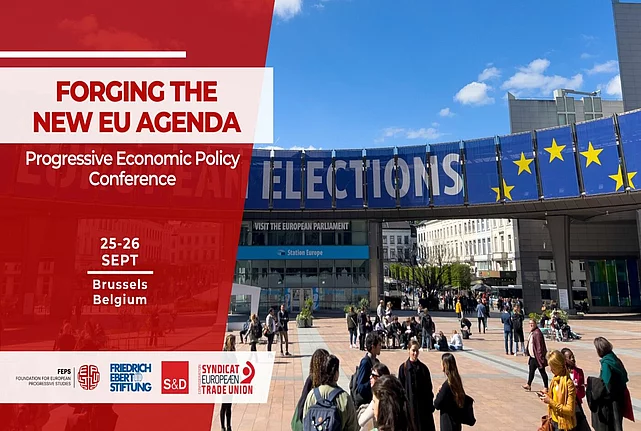 Progressive Economic Policy Conference: Forging the new EU agenda 09/24/2024 22:00 to 09/25/2024 22:00 - Académie Royale de Belgique, Brussels Terminexport im ICS-Format From 25-26 September, we will hold an expert conference on the EU’s key economic policy challenges. It will feature Helena Dalli, Commissioner for Equality, and Esther Lynch, ETUC Secretary General. The beginning of a new legislature offers unique possibilities: reshaping the work plan of the European institutions, adapting the approach to some existing initiatives, and putting forward new policy initiatives that freshly appointed European Commissioners or MEPs would want to champion. The Progressive Economic Policy Conference is an initiative co-organised with FEPS, the European Trade Union Confederation (ETUC) and the S&D Group, in collaboration with progressive organisations, representatives of the social-democratic movement and trade unions. Under Chatham House rules, it aims to bring forward progressive priorities in some of the important policy areas in which the Union will be active in this new legislature. Given the closed-door setting of the conference, the discussions will allow for fine-tuning organisational priorities and open exchanges. Taking place at the Académie Royale de Belgique, the conference will kick off on 25 September at 13:00 with a speech by the European Commissioner for Equality Helena Dalli on Anchoring equality in the new European agenda and a high-level talk with ETUC Secretary General Esther Lynch on Supporting workers in the transitions and ensuring quality jobs. In the late afternoon of 25 September and on the following day, it will feature six main roundtables on the EU’s key economic policy challenges. In the discussions, several critical priorities of progressives and trade unions are addressed transversally across the conference, including: Continuing the social agenda anchored to the European Pillar of Social Rights Protecting and expanding the EU Green Deal principles, policies and reach Ensuring the quality of work and good employment amidst the transitions Upholding upward convergence, territorial cohesion and equality To access the programme, please click here: download conference programme This conference will take place under Chatham House rules, and participation is possible upon invitation only. For more information, please contact Marie Hasdenteufel, Policy Officer for Economic & Digital Policy, Social Europe (Marie.Hasdenteufel(at)fes.de), or Daniela Iller, Policy Officer for Trade and Development (Daniela.Iller(at)fes.de).