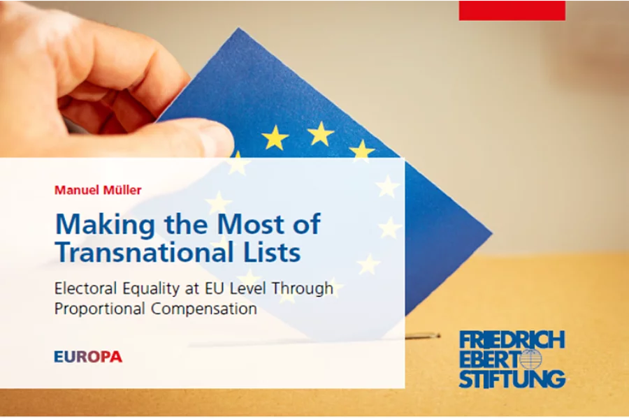 Strengthening European Political Parties 11.02.2022 Already since the Maastricht-reform of 1993, European political parties are part of the treaty on the European Union. In recent years, their significance has increased and they now play a more important role. Nevertheless, there is still a large discrepancy between the potential and the status quo of European political parties. In a new policy paper Manuel Müller describes the challenges and the necessary steps to build fully-functioning European parties and outlines their importance as a corner stone on Europe's way to a supranational parliamentary democracy. For more information, please contact: marco.schwarz[at]fes-europe.eu Policy Paper: Strengthening European Political Parties 508 KB Wednesday, 22.07.2020 News Publication How to strengthen the Democratic Legitimacy of the EU? New FES Policy Recommendations In advance of the upcoming debate on EU reform during the Conference on the Future of Europe (CoFoE), three policy papers by Manuel Müller and Julian Plottka of the Institut für Eurpäische Politik identify major deficiencies of the EU’s democratic... Wednesday, 05.05.2021 Event Launch Event: Progressive Manifesto for European Democracy 5 May from 14.00 to 16.30 (CET), via Zoom, REGISTRATION IS CLOSED Monday, 15.11.2021 News New FES Policy Paper: Making the most of Transnational Lists